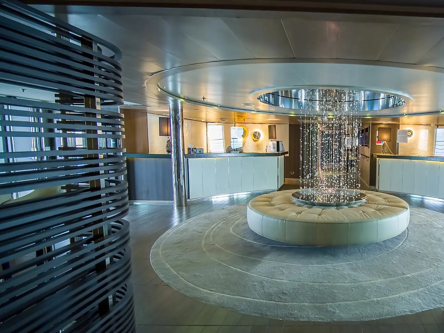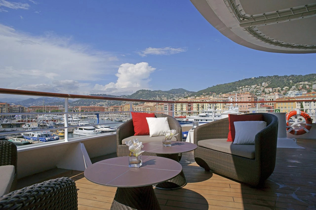 La gastronomía es un punto fuerte a bordo. El Restaurante Gastronómico sirve cocina francesa e internacional con un toque creativo, mientras que el Grill ofrece opciones informales al aire libre. El ambiente del barco transmite lujo discreto, ideal para viajeros que valoran la tranquilidad y el buen gusto.