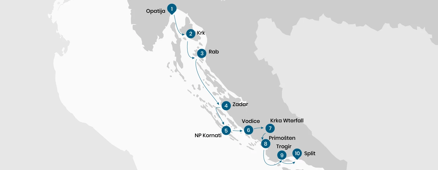 Disfrute del crucero matutino desde Rab hacia Zadar, pasando al lado de la isla de Pag con paisaje insólito lunar. Parada para nadar en pequeña isla de Maun. Tras la llegada a Zadar, guía local nos llevará por la ciudad con el rico patrimonio culturalque es visible a cada paso: el foro romano, que data del siglo I d.C., la iglesia de San Donato (siglo IX d.C.), que es una de las basílicas medievales más famosas y el símbolo de Zadar; las imponentes murallas de la ciudad, los numerosos palacios y villas construidos por antiguas familias nobles que adornan la zona del paseo marítimo, donde encontrará muchos restaurantes y cafeterías. Noche en Zadar.