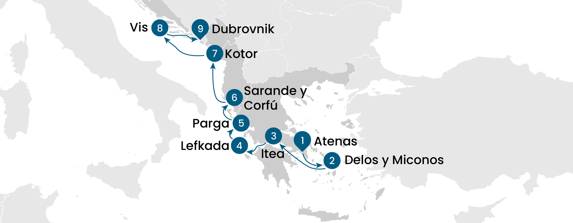 Viva la emoción de cruzar el impresionante Canal de Corinto, una joya de la ingeniería griega. Después, adéntrate en la magia de Delfos, declarado Patrimonio de la Humanidad, y descubre por qué los antiguos lo consideraban el centro del mundo.