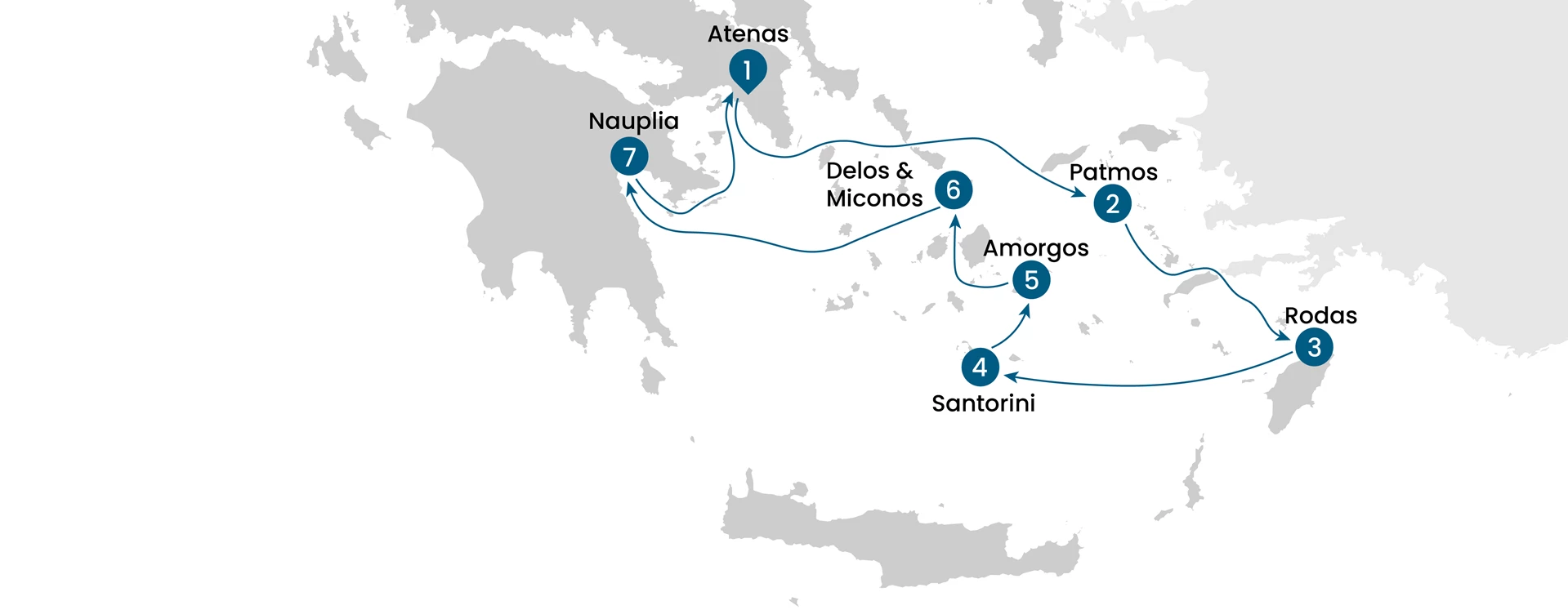 Nafplio, una joya del Peloponeso, combina encanto y riqueza histórica. Construida en las laderas de una colina verde, cuenta con monumentos como la Fortaleza de Palamidi, que ofrece vistas impresionantes del golfo Argólico. Los pórticos italianos de la Plaza Syntagma y la antigua ágora de Akronafplia reflejan su riqueza cultural. Este día incluye visitas al Teatro Antiguo de Epidauro, famoso por su excepcional acústica, y al yacimiento arqueológico de Micenas, donde podrás explorar la Puerta de los Leones y las imponentes Tumbas de Cúpula, acercándote a la historia de Grecia.