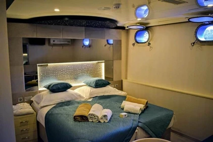 The ship is built to the highest standards and has all amenities to ensure a comfortable and unforgettable stay. The cabins are big and comfortable, with double or twin beds, lockers, heating and air conditioning, a hairdryer and more. Each cabin has a private bathroom with a shower.